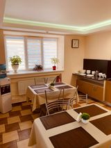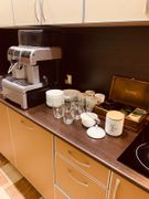 К услугам гостей предоставлена обеденная зона с общедоступным кухонным гарнитуром: кофемашина, кулер, тостер, варочная панель, микроволновая печь. Дополнительно в стоимость проживания можно включить завтрак.